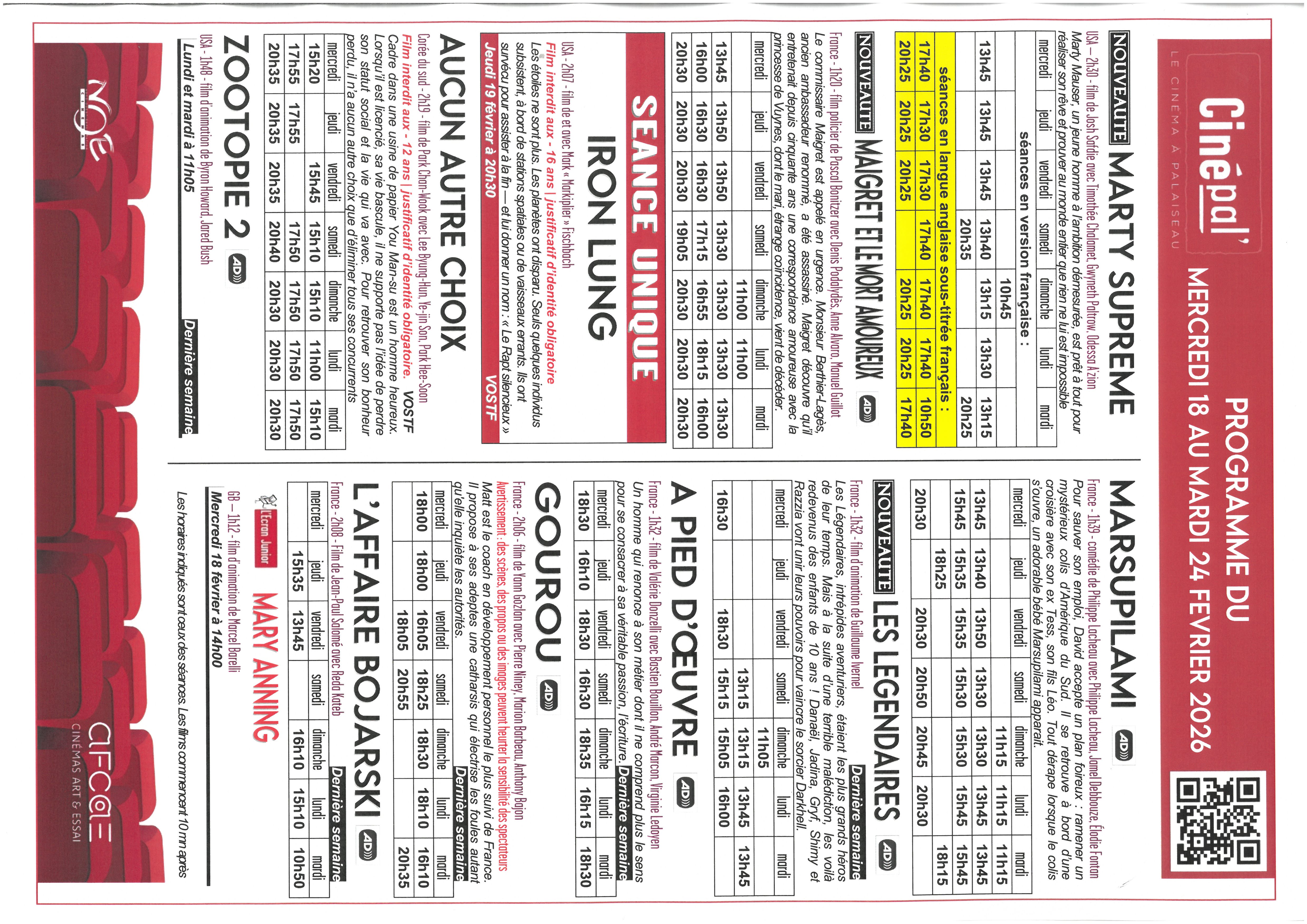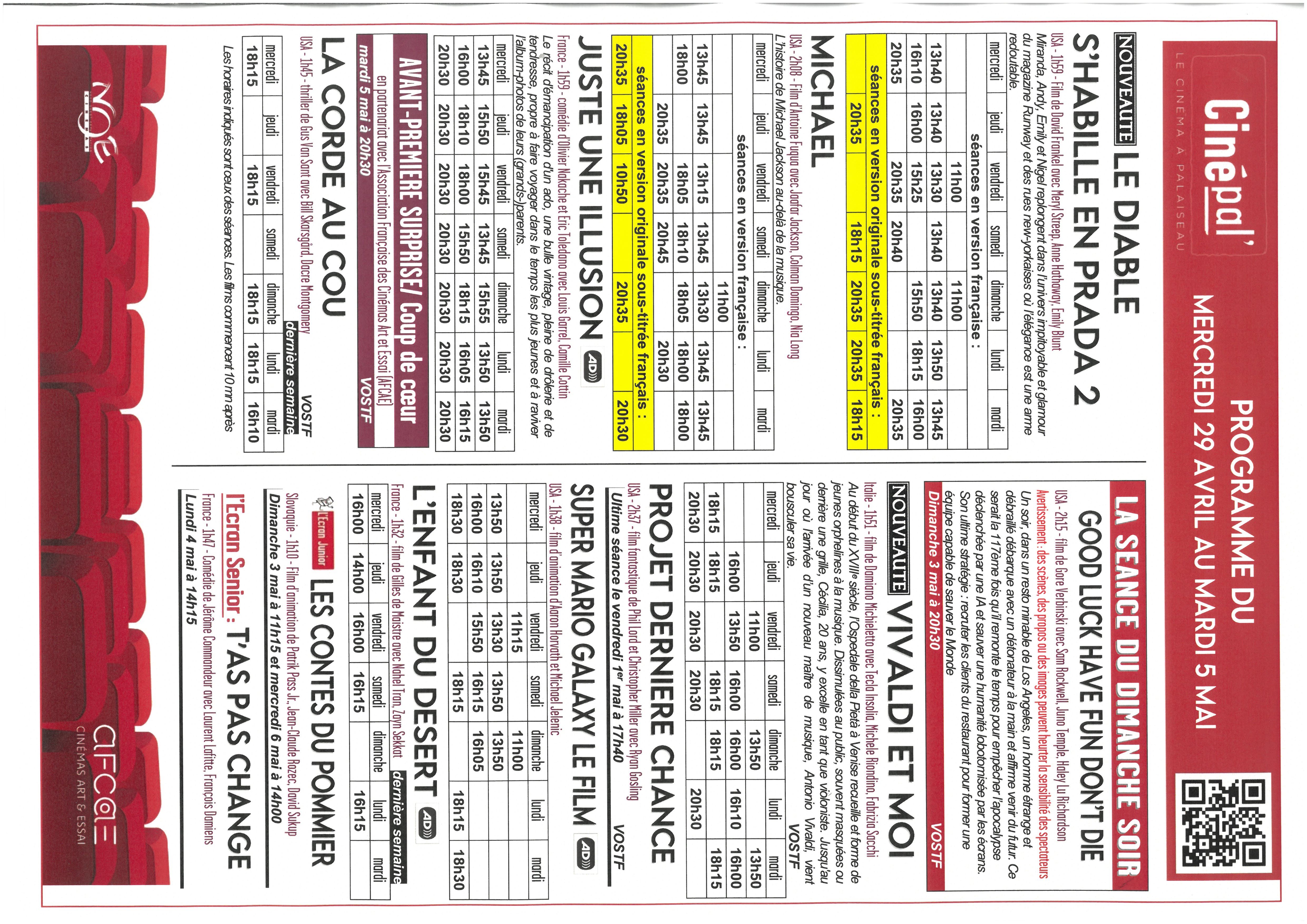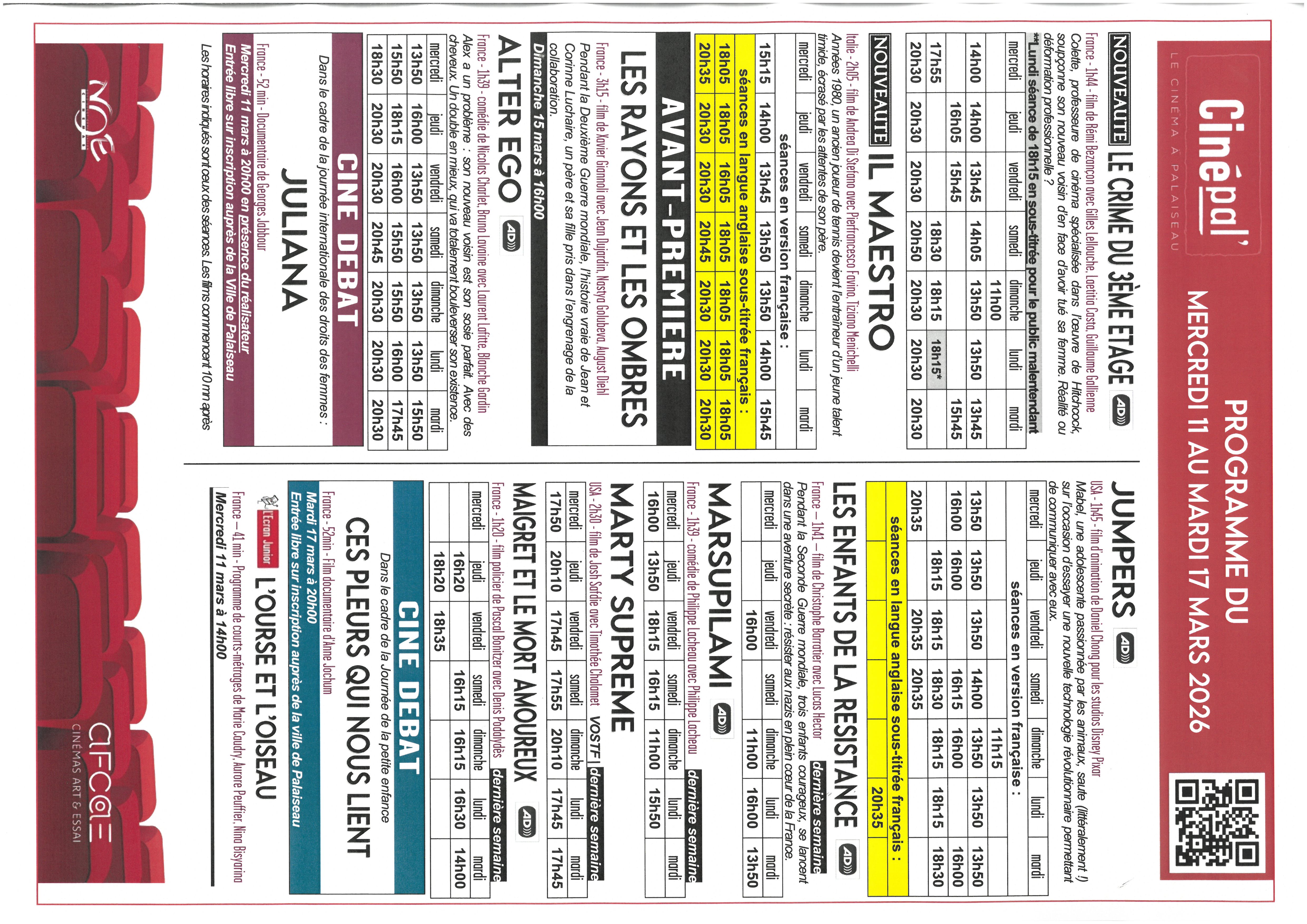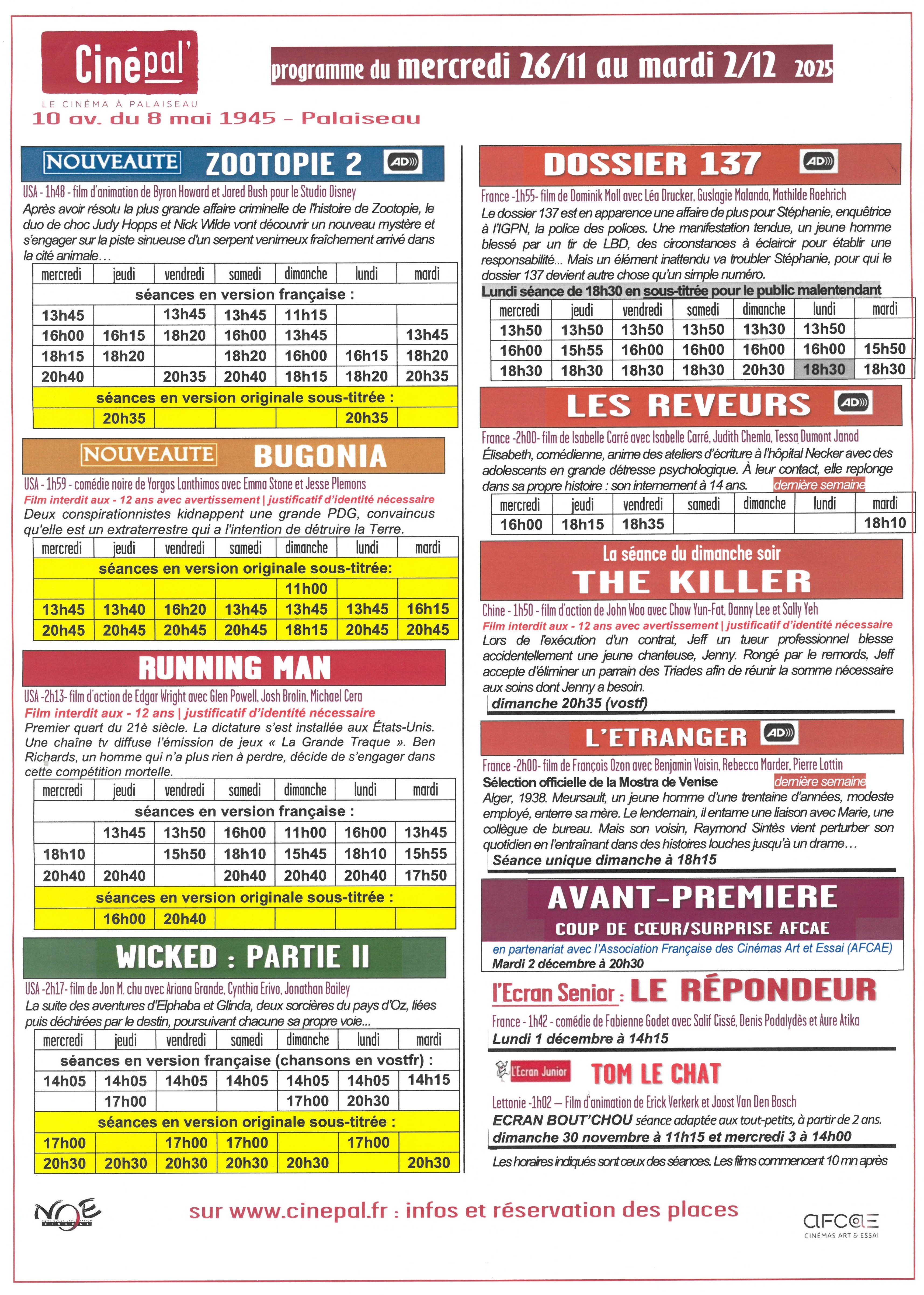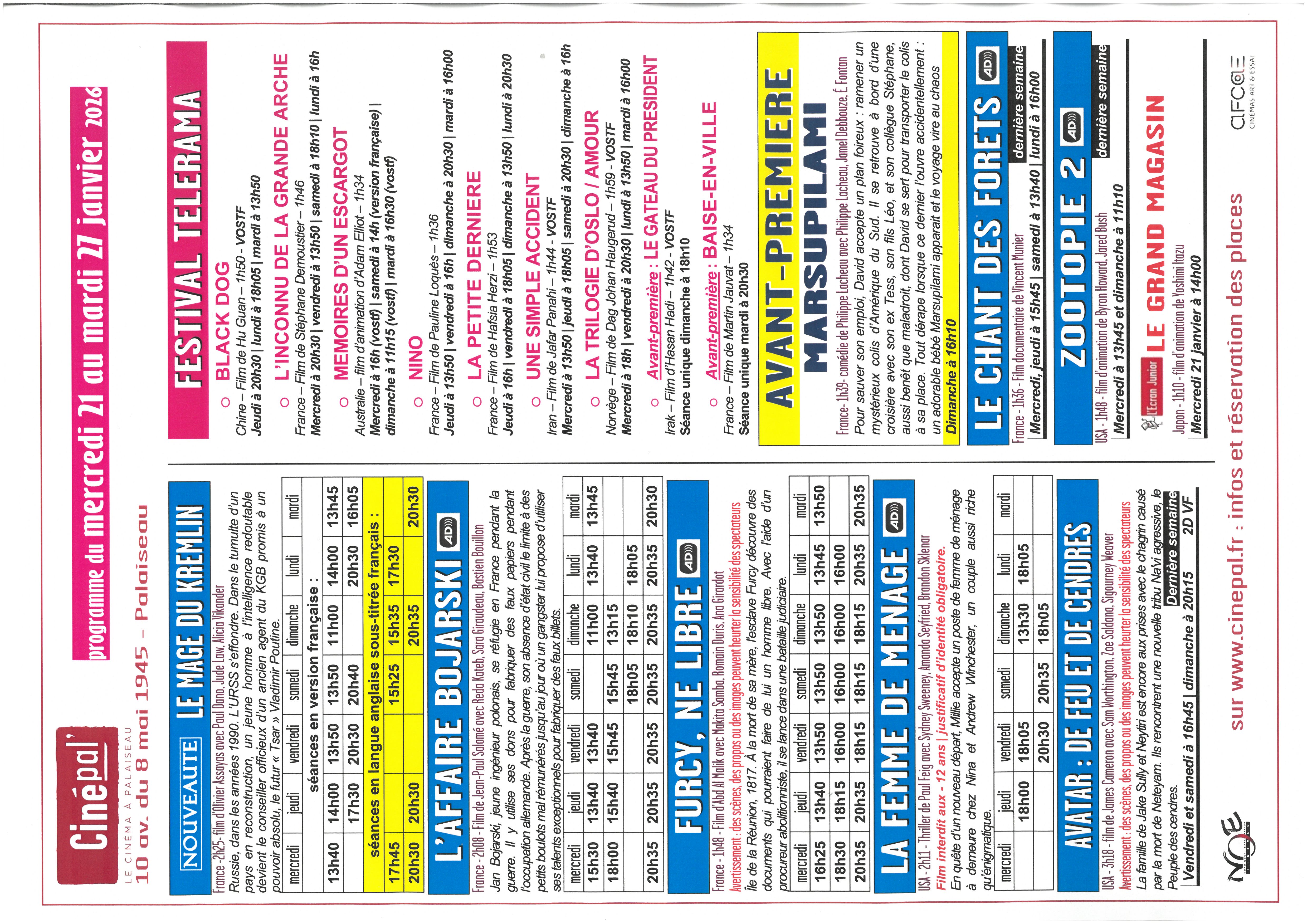 Pour permettre ensuite l'arrivée de nouveaux films, les films suivants ne seront plus au programme à partir du mercredi suivant :