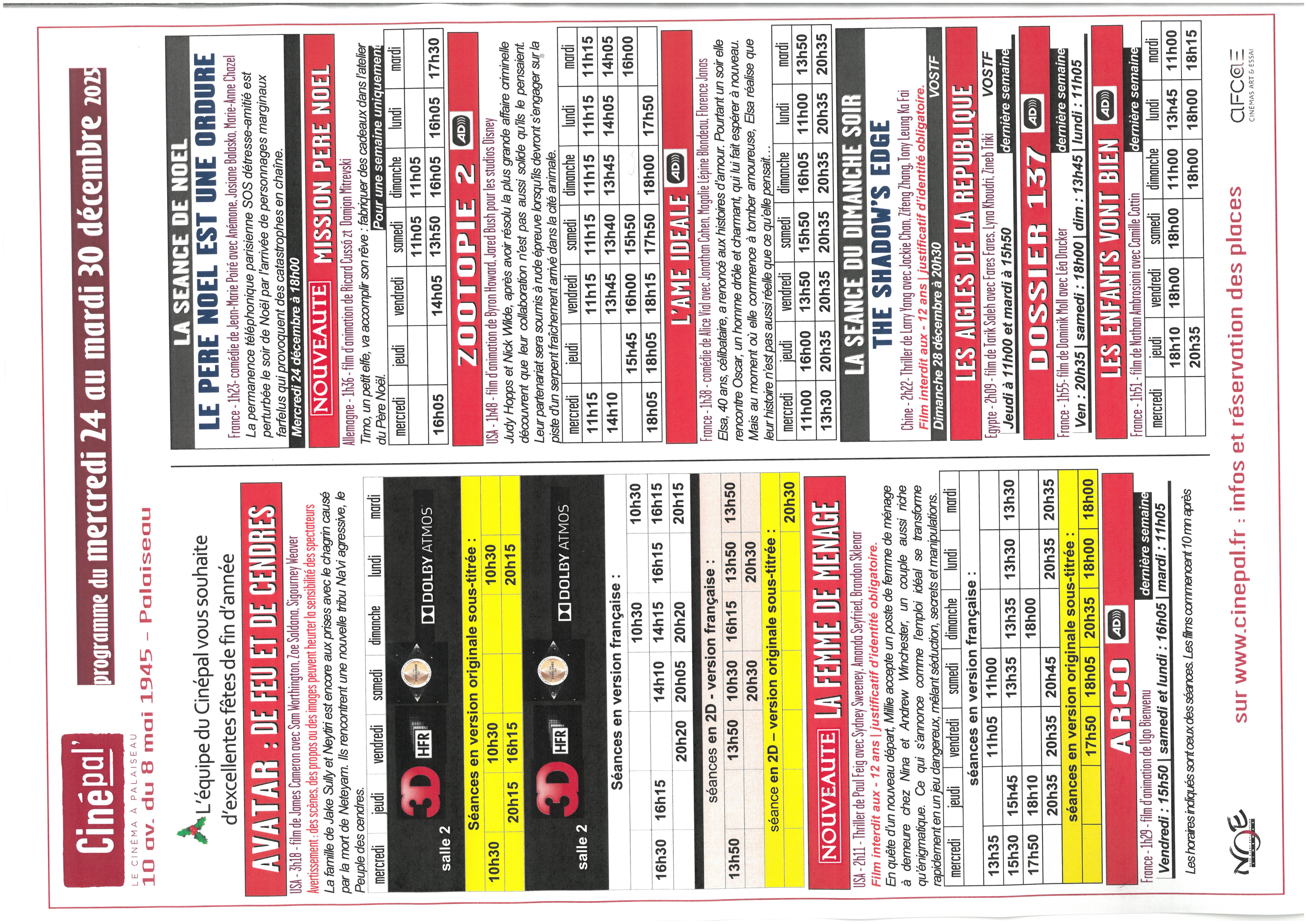 Réservation fortement recommandée en particulier pour les séances en 3D